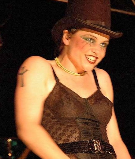 While seated next to Sarah the L at the aforementioned cabaret last year, my eyes quickly focused on a petite woman stage right. With the rest of the troupe, she was dancing with a chair while singing the song “If I Can’t Sell It, I’ll Keep Sittin’ On It.” Later on, to the audience’s delight, she played the part of a magician’s assistant with a high-pitched/squeaky voice and her animated movements. I’ve always said that Trixie stole the show and with her Victoria-goggles on, Sarah has always vehemently denied this claim.