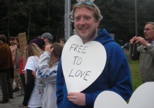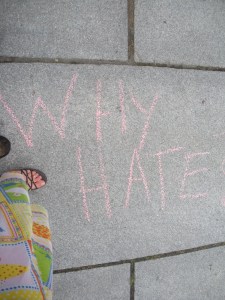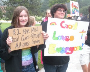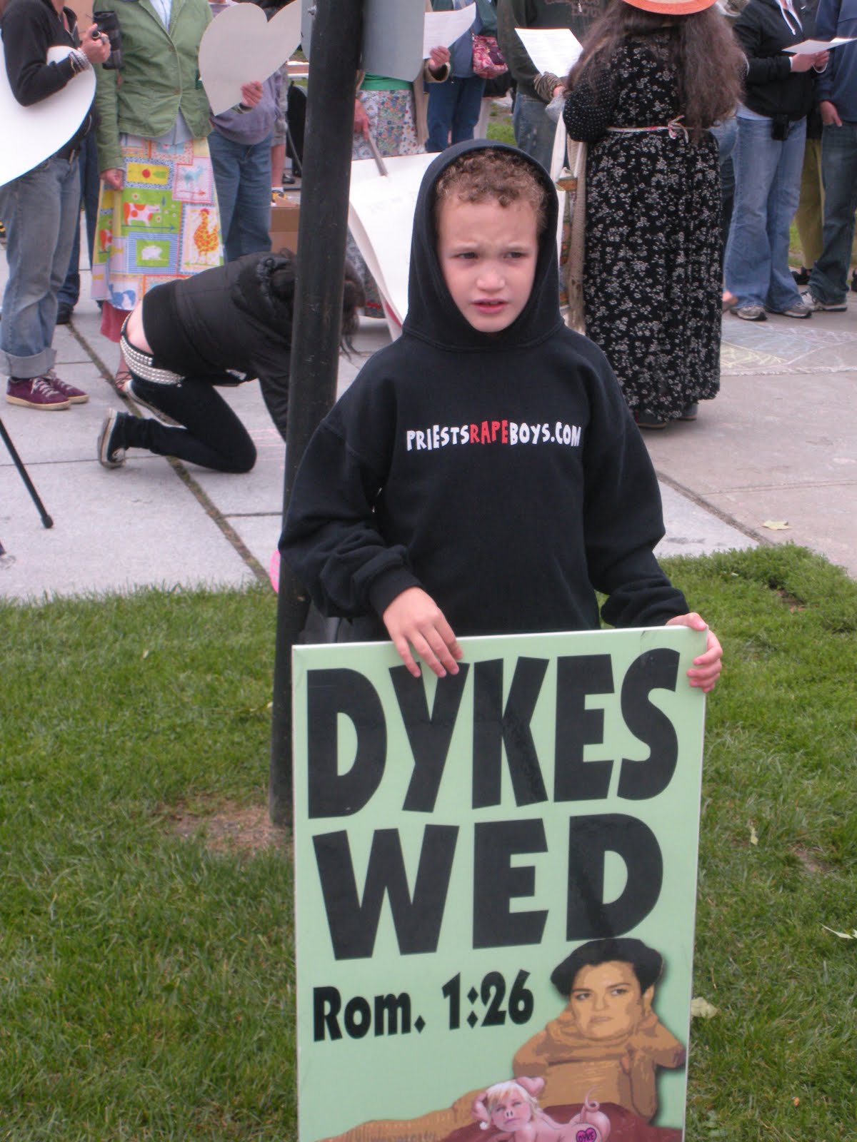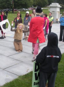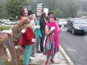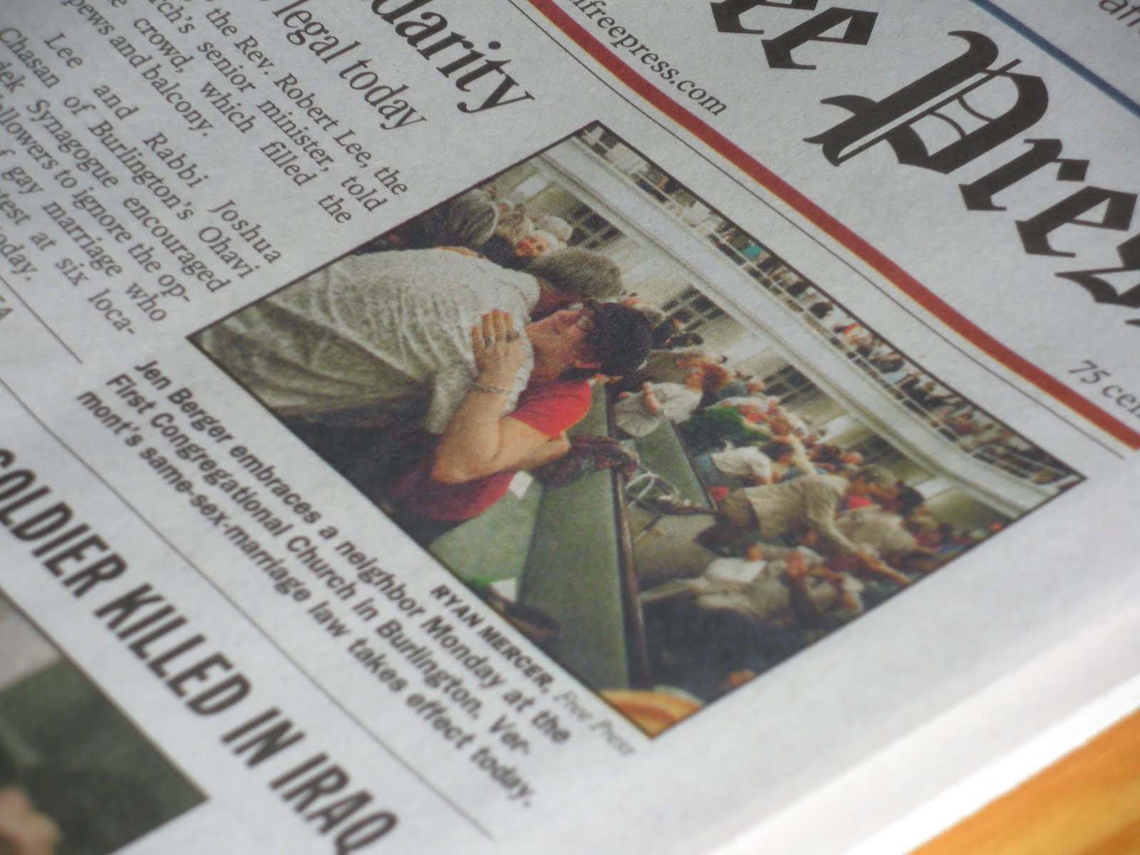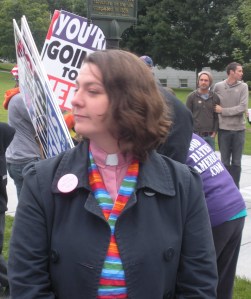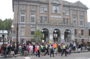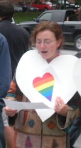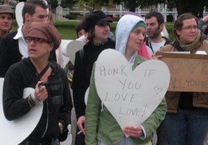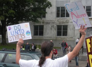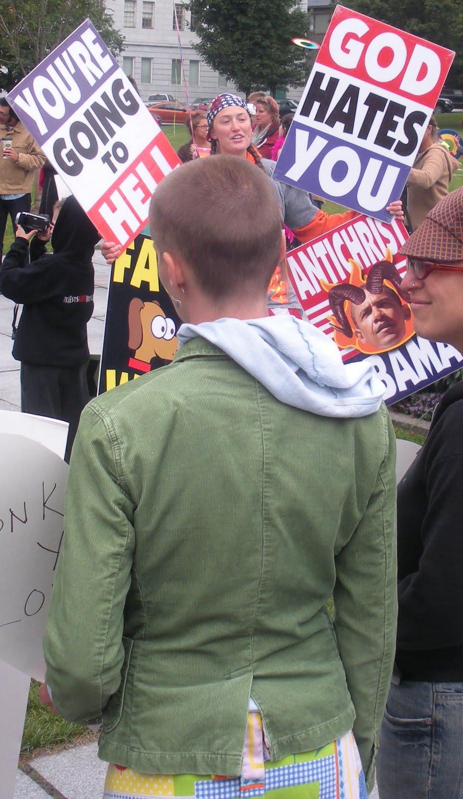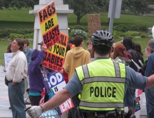 For obvious reasons, this encounter was on my mind yesterday morning when a small group of extreme protesters (or, to be fair, “protesters who some have deemed to be extreme”) visited Vermont to protest gay marriage as well as, it seemed to this biased observer, everything else. They were doing so on behalf of God. I’m not making that up. One of the women in the group said, “you’re darn tootin’ we’re a hate group. We’re preaching the hatred of God.” I can’t begin to imagine what makes these people tick; how one goes about justifying such a message. What I can state with full confidence, though, is that the majority of Vermonters disagree. And disagree they did.